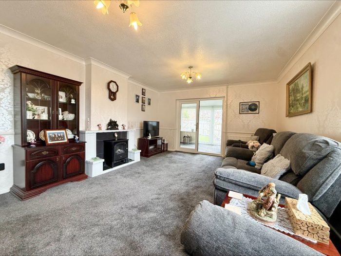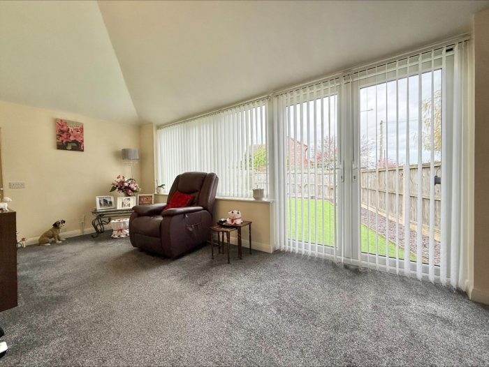 SITTING ROOM 19' 7" x 12' 11 max " (5.97m x 3.94m) UPVC double glazed window to rear; television point; decorative fireplace with tiled hearth and wooden surround; French doors leading to Garden Room.