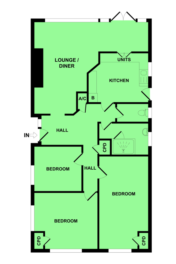 The approximate room sizes are only intended as general guidance. You must verify the dimensions carefully before ordering carpets or any built-in furniture.