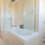 FAMILY BATHROOM bath with mixer tap and mains shower with waterfall attachment; wc; hand wash basin; upvc double glazed window to front aspect; heated towel rail; tiled flooring; tiled walls.
