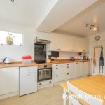 KITCHEN 16' 3" x 9' 7" (4.95m x 2.92m) fitted with a range of wall and base units with roll edge worksurfaces over; inset stainless steel single drainer sink with mixer tap; plumbing for automatic washing machine; space for tumble dryer; built in electric oven and inset electric hob with cooker hood over; space for American style fridge freezer; modern vertical style radiator; floor mounted oil fired central heating boiler; UPVC double glazed windows to rear and side aspects.