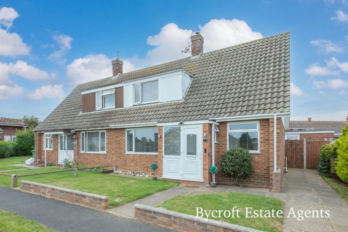 GUIDE PRICE £260,000-£270,000 Bycroft Estate Agents are delighted to present this semi-detached chalet style house situated in a popular cul-de-sac position within the coastal village of Winterton-on-Sea. Offering three bedroom accommodation split over two floors with family bathroom, spacious lounge, garden room and fully fitted kitchen. The property benefits from UPVC double glazing, oil fired central heating with gardens to the front and rear, with the front being open plan and the rear being enclosed and laid mainly to lawn providing the ideal space for relaxing and entertaining. An internal inspection is highly recommended to fully appreciate the style and quality of accommodation on offer.