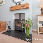 SITTING ROOM 21' 3" x 11' 5" max (6.48m x 3.48m) UPVC double glazed window to front; fireplace with inset wood burning stove, granite hearth and feature timber beam; TV point; French doors to Garden Room.