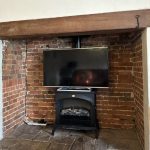 DINING ROOM 17' 9" x 7' 2" (5.41m x 2.18m) exposed beam ceiling; fireplace with decorative beam and tiled hearth.
