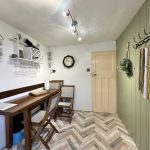 KITCHEN / DINER 15' 6" max x 9' 4" max (4.72m x 2.84m) fitted with a range of wall and base units with solid woodwork surfaces over; inset Belfast style sink; plumbing for dishwasher; built in electric oven; integrated electric hob; space for fridge freezer; dining area; loft hatch; UPVC double glazed door to front; UPVC double glazed windows to front and side; tiled splashbacks.