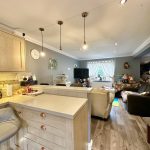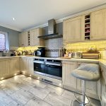 OPEN PLAN KITCHEN / LIVING SPACE 27' 3" x 10' 7" (8.31m x 3.23m) UPVC double glazed windows to front and rear aspects; kitchen area is fitted with a range of modern wall and base units with square edge worksurfaces over; inset one and a half bowl sink with mixer tap; integrated dishwasher, fridge and freezer; built in microwave; bank of two built in electric ovens; inset electric hob with cooker hood over; tiled splashbacks; UPVC double glazed door to rear.