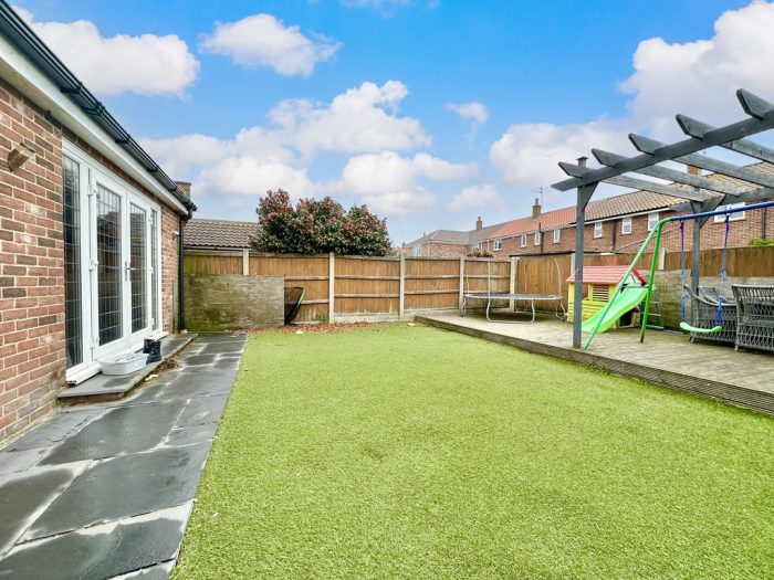 OUTSIDE To the outside front is a garden area laid mainly to block pave to provide off road parking with side access path. To the outside rear of the property is an enclosed garden laid mainly to artificial turf for low maintenance with a generously sized decked seating area and paved pathways opening into a further paved patio area leading to the side access gates and outbuilding measuring 13' 2" (plus cupboard) x 11' 1" with UPVC double glazed windows to front and side aspects and UPVC double glazed door to front.
