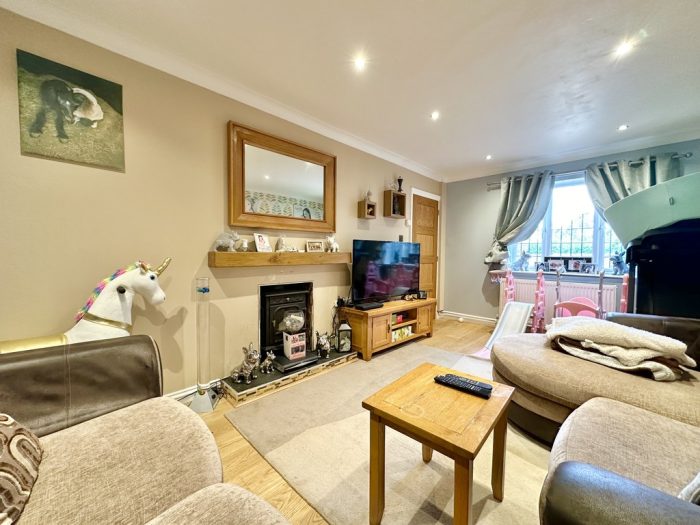 SITTING ROOM 16' 9" x 10' 2" (5.11m x 3.1m) UPVC double glazed window to front; fireplace with inset wood burning stove, tiled hearth and decorative wooden mantel.