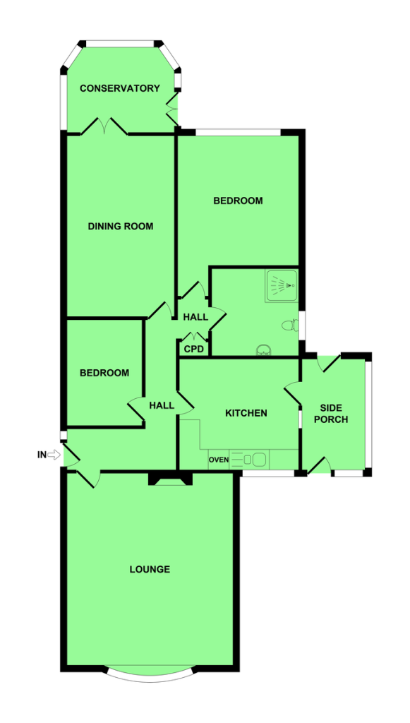 ENTRANCE HALL UPVC side entrance door with fixed side panel; radiator; access to roof space; shelved storage cupboard.