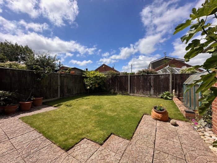 OUTSIDE To the front of the property there is a good size garden with brickweave pathway, lawn, shrubs and plants. Gate with side pathway and outside tap round to a well presented, enclosed, rear garden with paved patio area, lawn, borders with shrubs and plants, brick storage shed and greenhouse. En bloc garage.