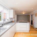 KITCHEN/DINER 22' 4" max x 9' 6" max (6.81m x 2.9m) fitted with a range of modern high gloss wall and base units with quartz worksurfaces over with upstand; inset one and a half bowl sink with mixer tap over; built-in double electric oven; built-in microwave; integrated dishwasher; inset electric induction hob; upvc double glazed window to rear; integrated fridge and freezer.