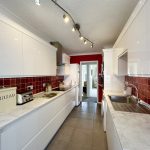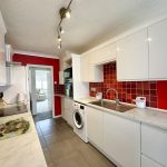 KITCHEN 11' 0" max x 7' 3" max (3.35m x 2.21m) fitted with a range of wall and base units with square edge worksurfaces over; inset stainless steel single drainer sink with mixer tap; built in electric oven; space for fridge freezer and microwave; inset electric hob with cooker hood over; tiled splashbacks; plumbing for automatic washing machine; integrated dishwasher.