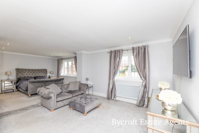 BEDROOM 1 26' 1" x 20' 8" max (7.95m x 6.3m) spacious principal suite with split level flooring; two upvc double glazed windows to rear.