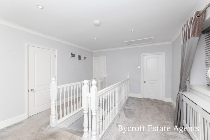 FIRST FLOOR GALLERIED LANDING 12' 5" x 16' 11" minus stairwell (3.78m x 5.16m) upvc double glazed window to front; airing cupboard; loft access.