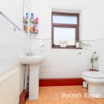 SHOWER ROOM pedestal wash hand basin; wc; shower cubicle with Triton fittings; frosted double glazed window; radiator.