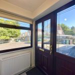 ENTRANCE PORCH 4' 1" x 5' 1" (1.24m x 1.55m) upvc double glazed door to side; upvc double glazed window to front and side; built-in storage cupboard with shelving and hanging rail.