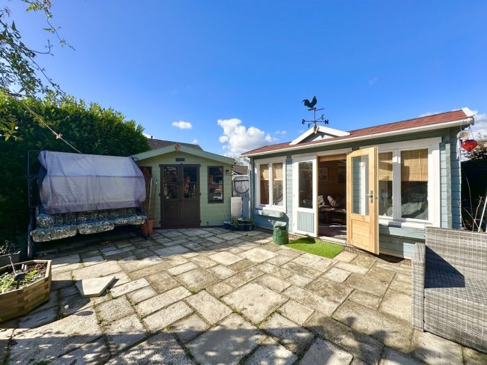 OUTSIDE To the front of the property is an extremely well proportioned driveway area providing ample off road parking for the property. Established trees, shrubs and flower borders. Outside tap. Outside power point. Electric car charging point, side access gate and up and over door to garage. To the outside rear of the property is a generously sized rear garden area laid mainly to lawn with established shrubs and hedging. A paved patio area provides the ideal space for relaxing or entertaining, two timber summerhouses, personal door leading to the garage 18'3" x 20'4" with up and over metal door, power and light.