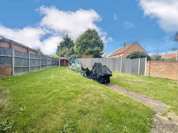 OUTSIDE To the front is a garden area laid to lawn with a side driveway with space for several cars standing. Gated access to the rear garden which is enclosed and a good size mainly laid to lawn with large timber summerhouse with electric, outside light and cold tap.
