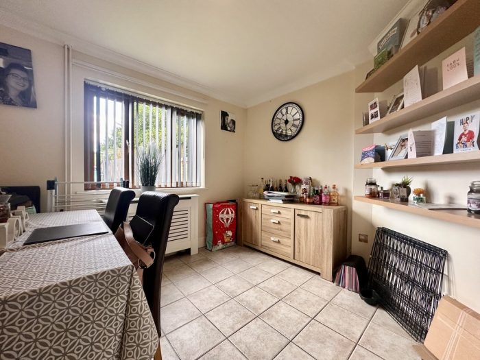 DINING ROOM 11' 2" max x 9' 11" (3.4m x 3.02m) window to rear aspect; radiator; tiled flooring.