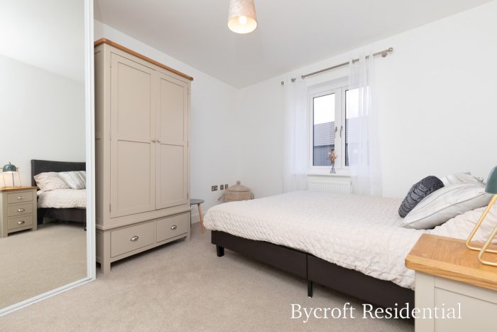 BEDROOM 1 12' 6" x 12' 1" max (3.81m x 3.68m) including built in fitted double wardrobe with mirror fronted sliding doors; window to front aspect; radiator.