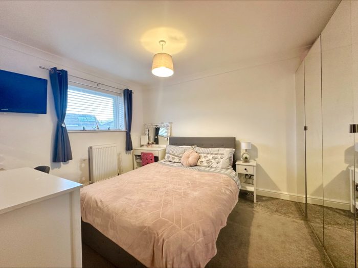 BEDROOM 2 11' 2" max into robe x 10' 8" max into door recess (3.4m x 3.25m) fitted wardrobes; UPVC double glazed window to rear; radiator.