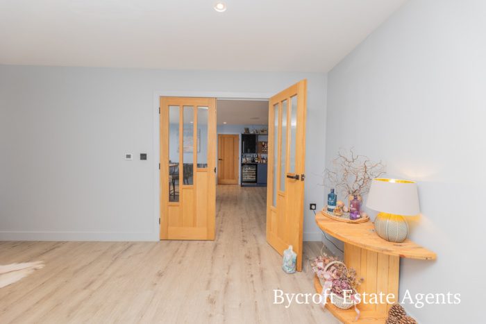 ENTRANCE HALL 26' 6" max x 29' 9" max (8.08m x 9.07m) double glazed composite door to side; full height UPVC double glazed window to front; loft access.