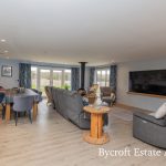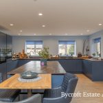 Kitchen area - fitted with a range of wall and base units with square edge worksurfaces over; built in two electric ovens and built in microwave oven; integrated fridge, freezer and dishwasher; one and a half bowl sink with mixer tap and water softner; inset induction hob with downdraught extractor; bin drawer; UPVC double glazed door to side; central island unit with pan drawers to both sides.