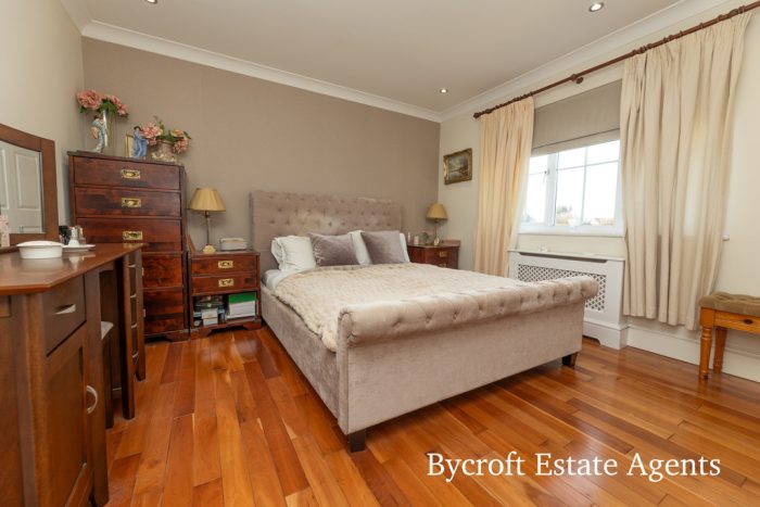 BEDROOM 1 11' 4" x 11' 0" (3.45m x 3.35m) plus large door recess with access to En Suite and also plus two built in double wardrobes; window to front aspect; radiator; downlights.
