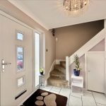 ENTRANCE HALL 6' 11" x 9' 10" max into stairwell (2.11m x 3m) double glazed composite door to front flanked by two full height UPVC double glazed obscure glass windows to front; stairs to first floor; understairs storage cupboard; radiator.