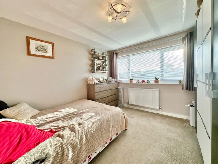 BEDROOM 1 14' 7" x 8' 8" max (4.44m x 2.64m) UPVC double glazed window to rear; loft access (loft part boarded); radiator.