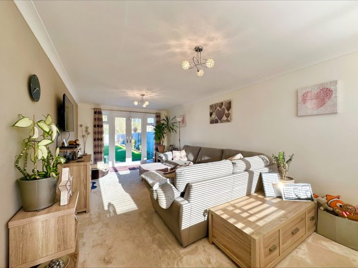 LOUNGE 20' 5" x 10' 5" (6.22m x 3.18m) UPVC double glazed double doors to rear leading out to the rear garden flanked by two full height UPVC double glazed windows; UPVC double glazed window to front; vertical radiator.