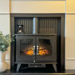 LOUNGE 15' 10" x 9' 8" (4.83m x 2.95m) UPVC double glazed window to rear aspect; feature fireplace with electric wood burner.