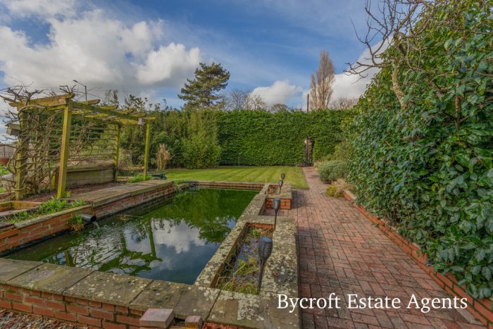OUTSIDE To the front of the property there is a large garden area with conifer screening, fish pond, timber gate and pathway to the front door. Gate to side enclosed brickweave courtyard patio area. Timber gate to further storage area with external power points. To the rear there is a further brickweave driveway with space for three cars standing together with a wooden gate leading into an enclosed garden with lawned area, block paving pathways and patio, raised side borders with shrubs and plants and a bar-be-que/pizzeria area.