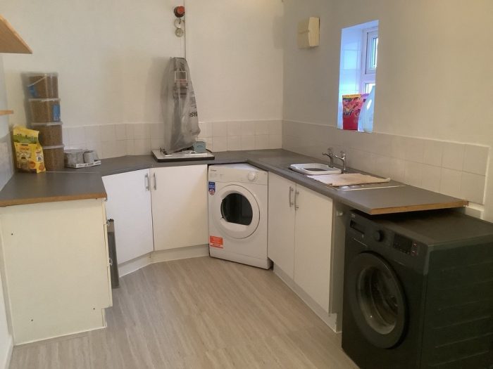 UTILITY 16' 11" x 7' 8" (5.16m x 2.34m) worktop with a range of base cupboard and drawers; one bowl sink; space and plumbing for washing machine; space for tumble dryer; radiator.