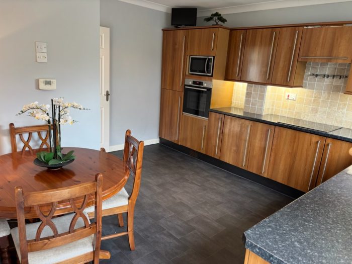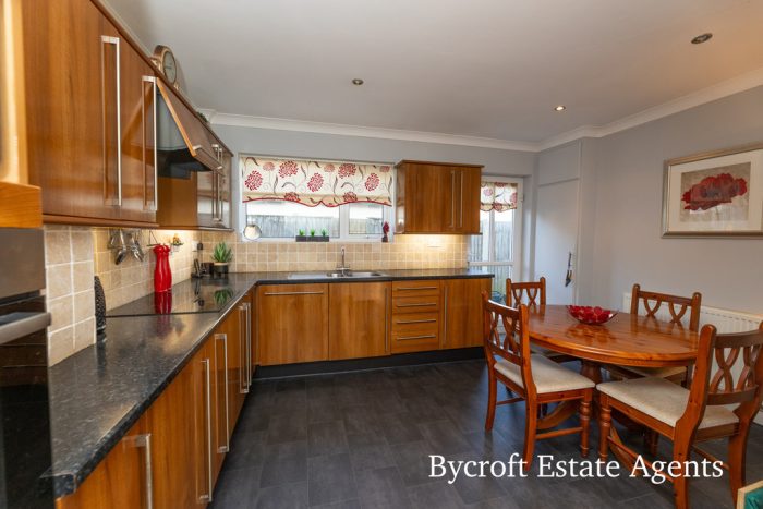 KITCHEN / DINER 13' 6" x 13' 4" (4.11m x 4.06m) fitted with a mixture of modern wall and base units; integrated oven and hob with extractor hood over; sink drainer; integrated dishwasher; UPVC double glazed window to rear aspect.