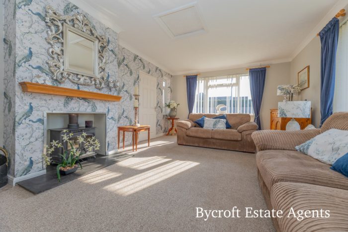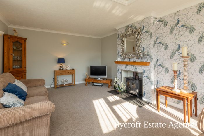 LOUNGE 21' 0" x 12' 11" (6.4m x 3.94m) UPVC double glazed windows to front and side aspects; wood burner.