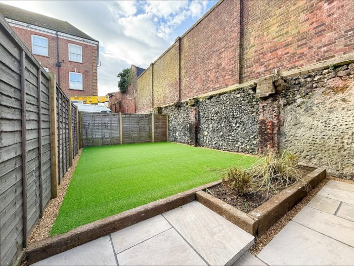 OUTSIDE The property is approached via a shingled driveway leading to an off road parking area with gated entrance into the enclosed garden area with paved patio seating area providing the ideal space for relaxing or entertaining, raised beds with retaining sleepers, shingled borders and artificial lawn for low maintenance. The rear garden benefits from the historic feature of the original town wall providing a stunning mapped flint boundary wall. Outside lighting.