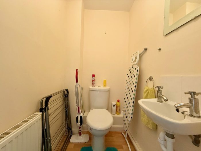 CLOAKROOM wc; wash hand basin; radiator; extractor fan.