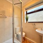 SHOWER ROOM 6' 3" x 5' 9" (1.91m x 1.75m) fitted with a white suite comprising of a pedestal wash hand basin; low level wc; walk in shower cubicle with bifolding screen door and wall mounted shower unit; fully tiled walls; UPVC double glazed window to side.