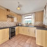 KITCHEN 11' 4" x 9' 5" (3.45m x 2.87m) fitted with a range of wall and base units with roll edge worksurfaces over; inset stainless steel double drainer sink with taps; tiled splashbacks; space for cooker with electric and gas cooker points and cooker hood over; UPVC double glazed windows to front and side; UPVC double glazed door to side; space for fridge and freezer; plumbing for automatic washing machine; tiled flooring.