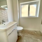 EN SUITE shower cubicle; vanity washbasin; wc; heated towel rail; side window.