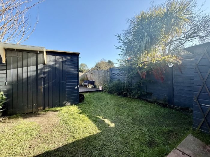 OUTSIDE To the rear of the property is a low maintenance garden with low fencing and pathway to front door. To the rear of the property is an enclosed garden with paved patio area; lawned; decked patio; large timber shed.