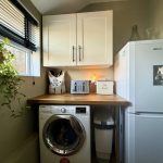 UTILITY ROOM 5' 7" x 5' 1" (1.7m x 1.55m) worktop with space and plumbing for washing machine; space for upright fridge/freezer; double wall unit; rear window.