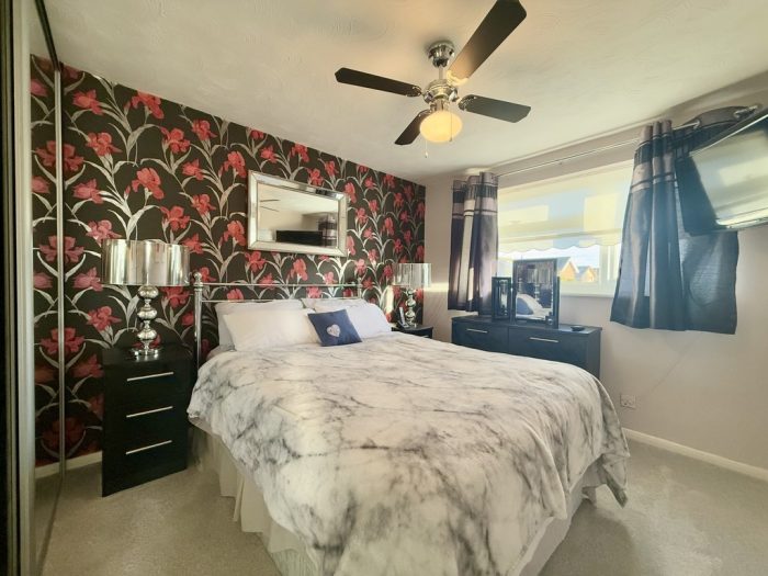 BEDROOM 1 12' 2" x 9' 1" (3.71m x 2.77m) large fitted double wardrobe with sliding mirror fronted doors; window to front aspect.