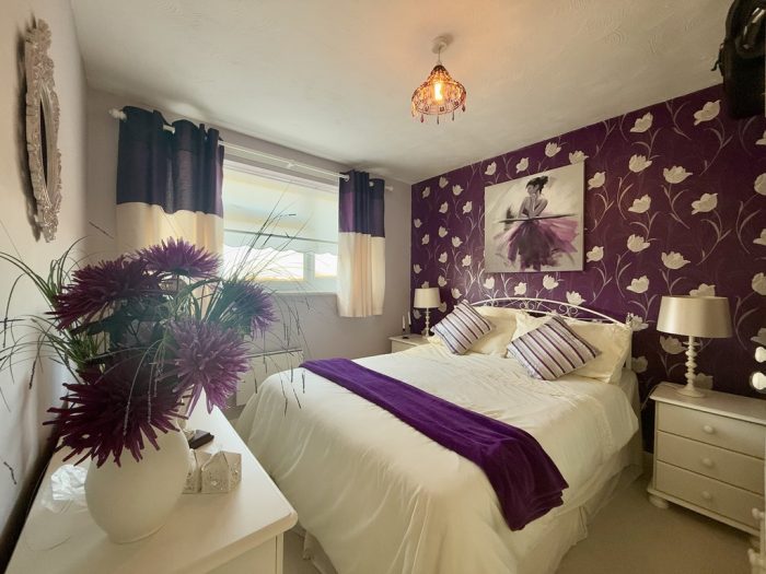 OUTSIDE To the front of the property there is a large double width driveway leading to a garage with personal door into the rear garden and a further side driveway with double iron gates providing further off road parking. Useful side storage area. To the rear there is an enclosed, low maintenance garden with artificial lawn, patio area, outside lights, shrubs and plants and pathway leading round to the front of the property.