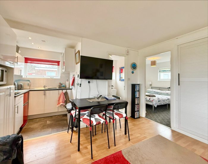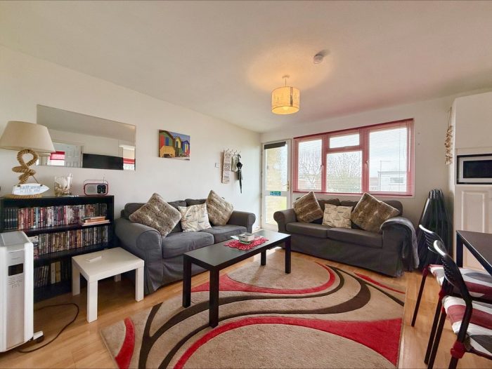 LIVING AREA 12' 11" x 12' 3" (3.94m x 3.73m) UPVC double glazed door and window to front; TV point; built in storage cupboard; opening to Kitchen.