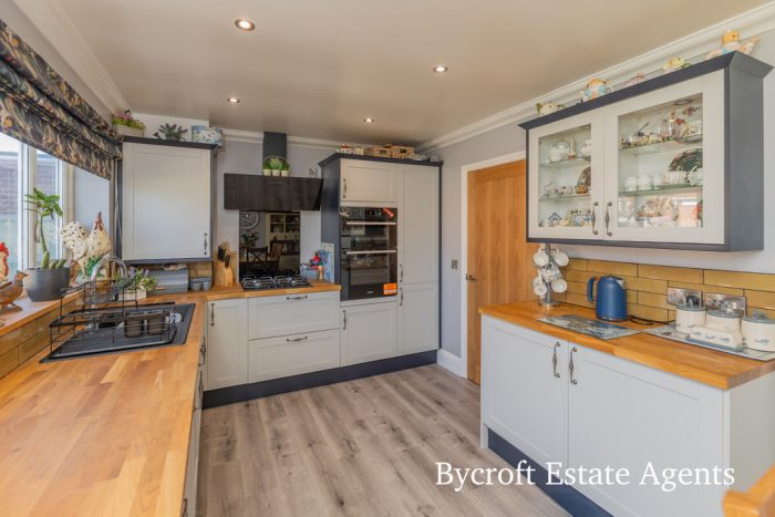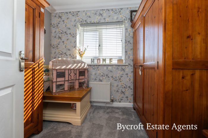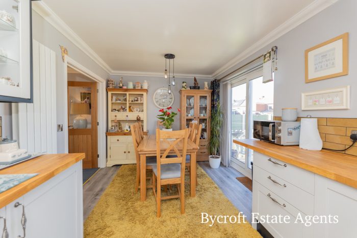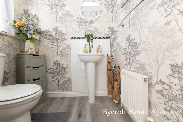 Bycroft Estate Agents are delighted to present this modern and immaculately presented three bedroom detached family residence situated in this convenient and sought after location close to shops, amenities and schools for all ages. Accommodation comprises spacious entrance hall, cloakroom, lounge, kitchen/diner, first floor landing, three bedrooms with en suite to principal, bathroom, front brickweave forecourt, enclosed rear garden with patio, driveway and detached single garage, gas central heating and double glazing.