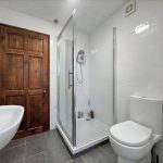 FAMILY BATHROOM walk in shower cubicle with electric wall mounted shower unit; wc; hand wash basin; bath with mixer tap; UPVC double glazed window to rear aspect; heated towel rail.