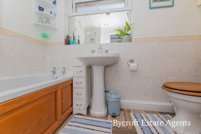 BATHROOM wc; hand wash basin; bath with mixer tap and wall mounted shower unit over; UPVC double glazed window to side aspect; extractor.
