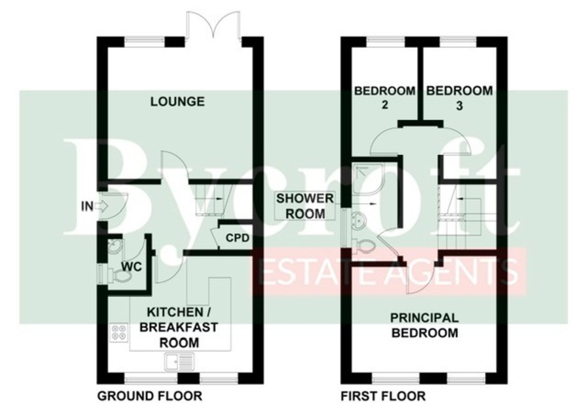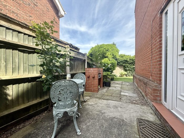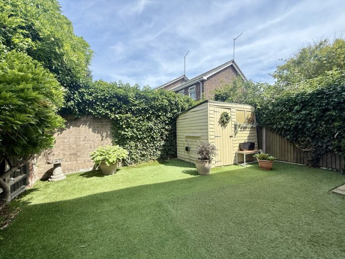 OUTSIDE To the front of the property there is a driveway with space for two cars standing, side border with shrubs and flowers and gate and pathway to the front door. To the rear there is an enclosed low maintenance garden with artificial lawn and timber shed.
