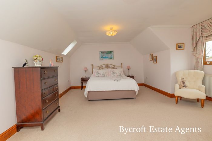 PRINCIPAL BEDROOM 19' 6" x 12' 2" (5.94m x 3.71m) part sloping ceilings; two Velux windows; further window to front aspect; radiator; large opening to Dressing Area; door to En Suite.